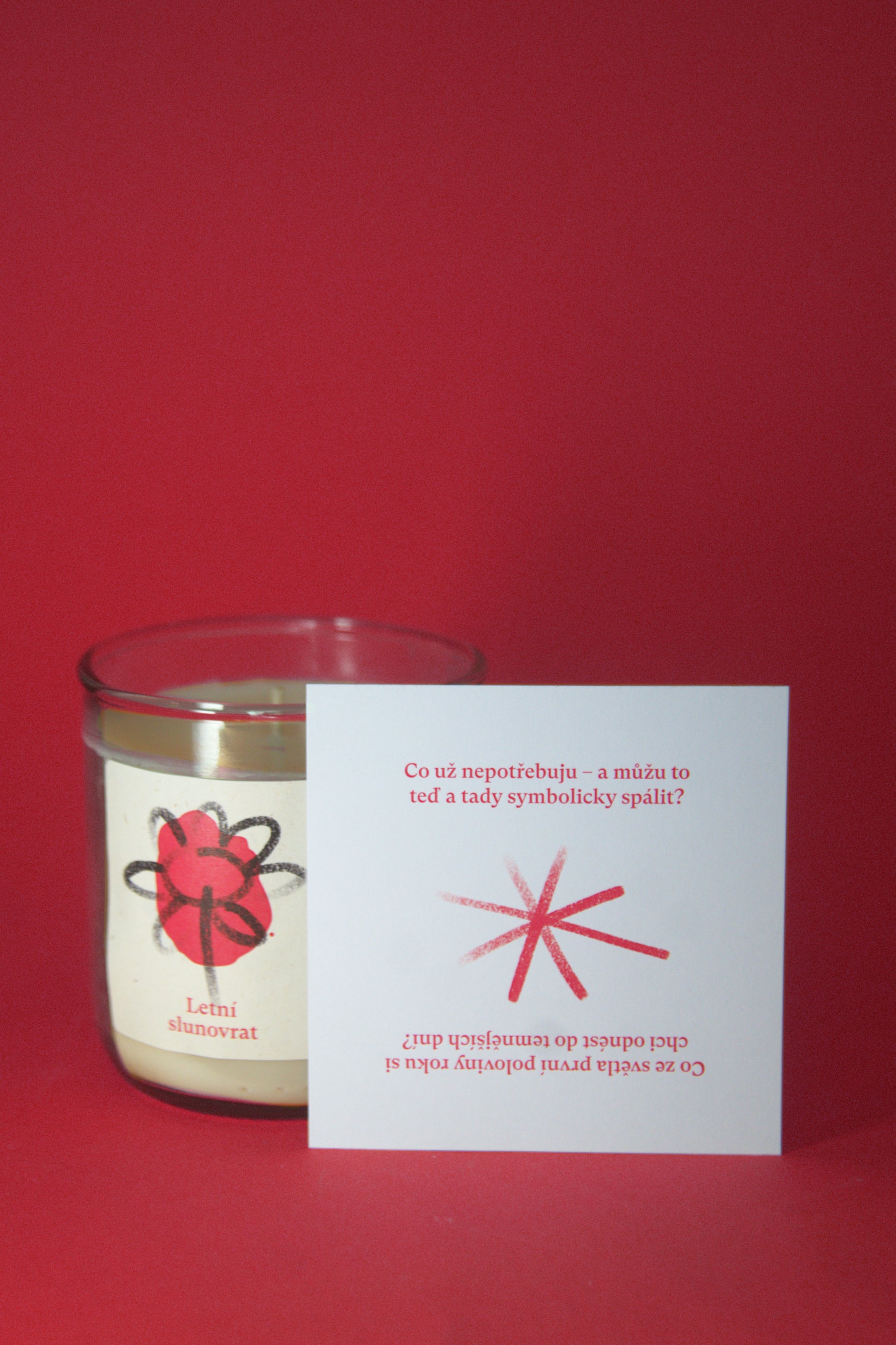 Ke každé svíčce dostanete rituální kartička – malý návod, jak si vytvořit své drobné slunovratové rozjímaní, ať je červen nebo leden.